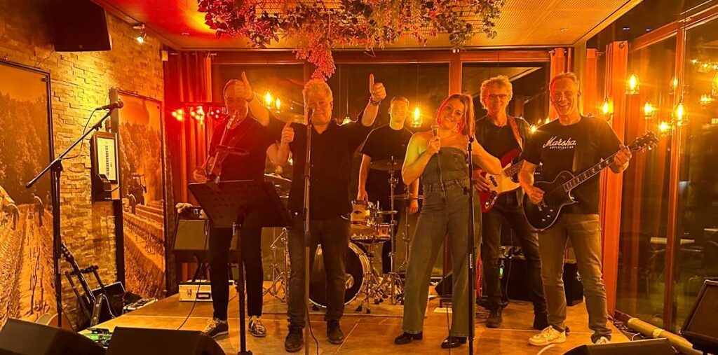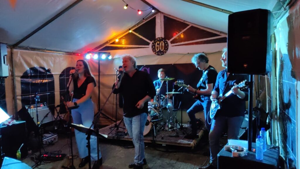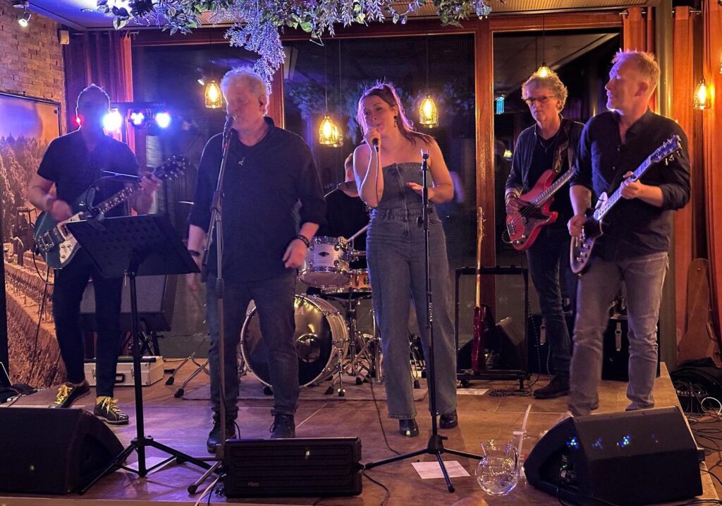 Sfeerimpressie – foto’s Zanger Nol Gitarist Rob Basgitarist Frans Zangeres Rianne Gitarist Leon Bassist Frans Gitarist Leon Zanger Nol Gitarist Rob Zangeres Rianne Feestje kelder Koningsdag 60 jarige feest Podium 10 Cafe De Nabber Cafe De Nabber